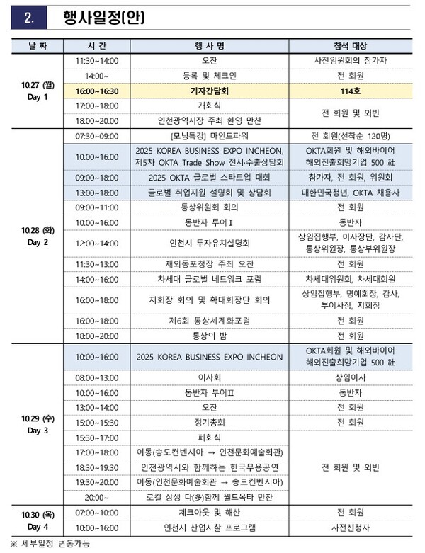 27일 인천 송도서 개회식, 월드옥타·인천시 공동주최